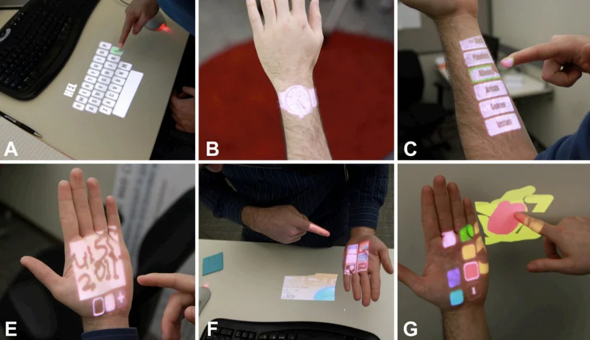 In the case of computers, the interface is being improved and reduced to a non-mechanical massless state by replacing the persistent and energy-invested mechanical contact switches with an optical sensing system and a projected information interface. The tangible form of the mechanism or interface can become at its most extreme massless and sizeless : purely energetic.